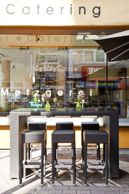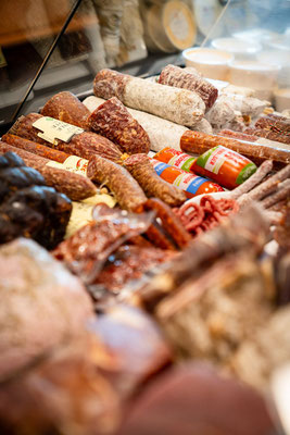 Bei uns finden Sie ein breites Angebot von „Bioland“ (DE-ÖKÖ-006-Kontrollstelle) Fleisch und Geflügel sowie regionaler Waren vom Schwäbisch-Hällischen Landschwein. Darüber hinaus finden Sie in der Theke ein Sortiment von Käsespezialitäten und Charcuterie, Antipasti bis hin zu über zwanzig täglich frisch zubereiteten Salaten.