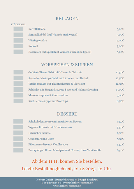 Alternativ können Sie das Formular auch selbst herunterladen, zu Hause ausdrucken, ausfüllen und uns entweder per E-Mail an event@herkert-catering.de zusenden oder in einem unserer Läden abgeben.